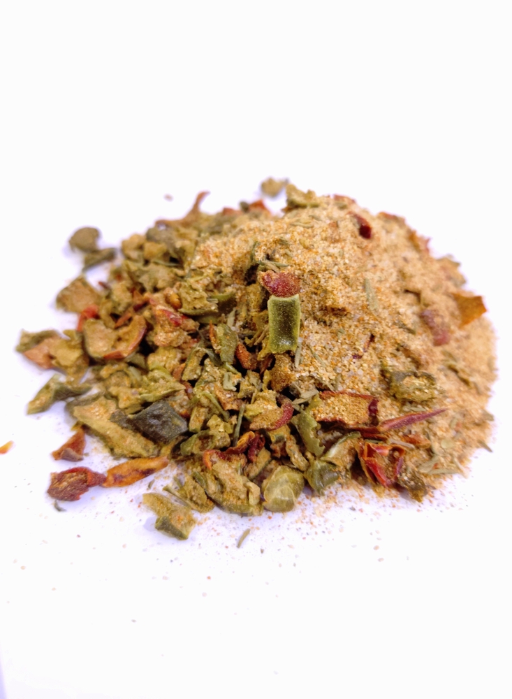 Koostisained: paprika, sibul, lauasool, küüslauk, tšilli, pärmiekstrakt, basiilik, tüümian, maitsetugevdaja (naatriumglutamaat), maitseained (sisaldab SELLERIT), maitsetaimed