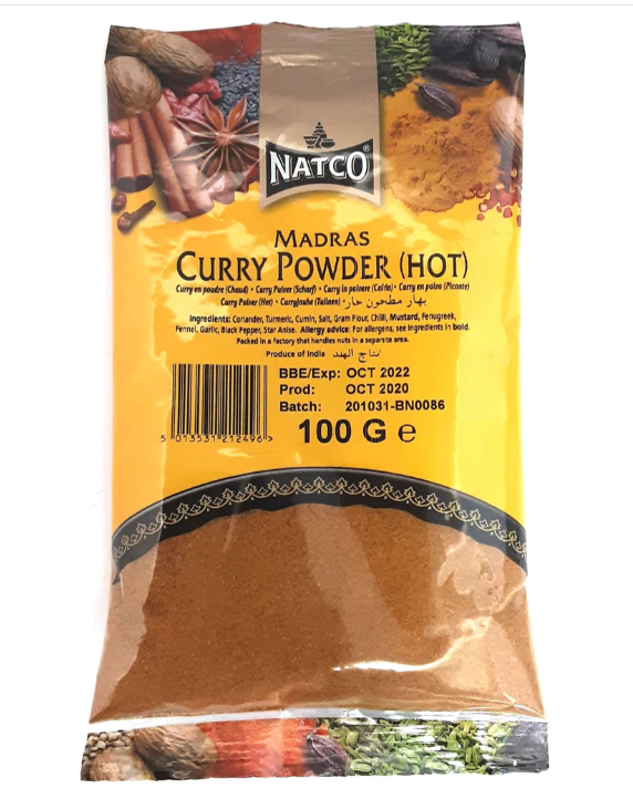 Natco Madrase karripulber on autentne eksootiliste vürtside segu, mida tuleks kasutada India köögis. Suurepärane kastmete, suppide ja riisi maitsestamiseks.