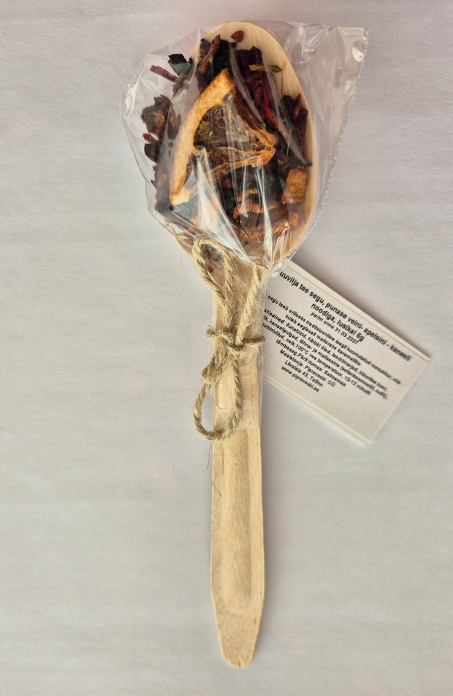 Koostisained: õunatükid, hibiski õied, leedrimarjad, kibuvitsa koor, puuvõõrik, kaneelipulgad, lõhna- ja maitseaine (selleriseemneõli, sulfit), apelsiniviilud, nelk.
