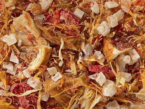 Kõrgeima tasemega puuviljatee segu! Selle vähese happesisaldusega segu aluseks on eriti suured helbed ja mahlaste, eranditult eksootiliste puuviljade kuubikud. Magus ja värske maitsekooslus! Väga maitsev ka jääteena.